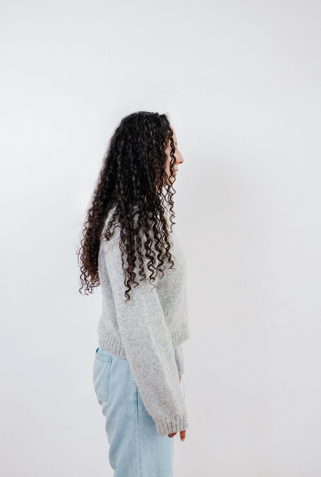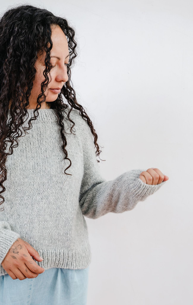 Dieser Pullover ist handgestrickt und entspricht der Größe 36 (S).