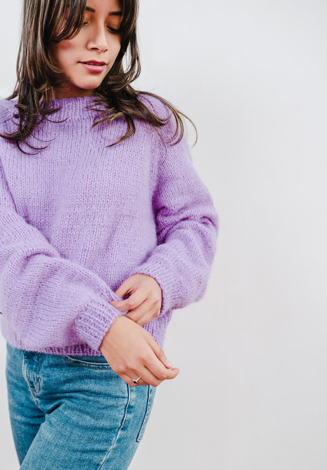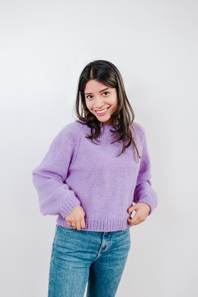 Dieser Pullover ist handgestrickt und entspricht der Größe 36 (S).