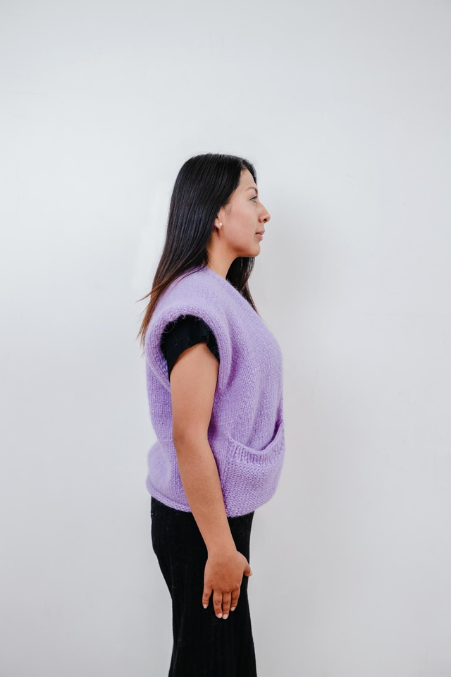Hergestellt aus 70% Baby Alpaka, 7% Merinowolle und 23% recyceltem Polyamid, vereint diese Weste natürliche Wärme, seidige Weichheit und umweltbewusste Innovation. Sie ist nicht nur ein zeitloses Mode-Statement, sondern spiegelt das meisterhafte Können und die Tradition indigener Handwerker*innen aus den Anden von Peru wider, die jede Masche mit Herz und Leidenschaft gestalten. Perfekt also, um dich stilvoll und verantwortungsvoll durch jede Jahreszeit zu begleiten.